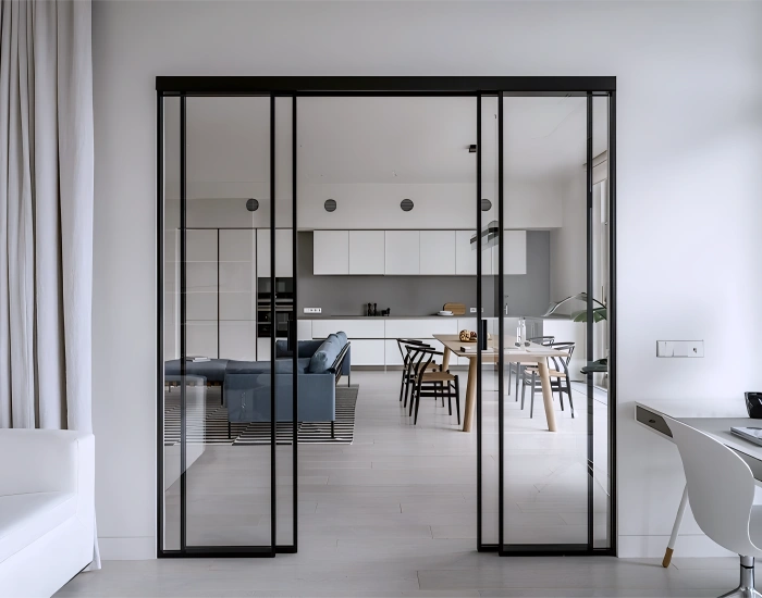 Ideal for residential and commercial applications, they provide space-saving advantages by eliminating the need for swing clearance, making them especially suited for conference rooms, apartments, partitions, and modern open-plan layouts. The clean, linear design integrates seamlessly into minimal, industrial, or premium interior styles.